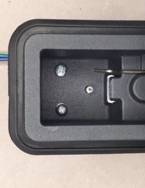 7. Once tested and confirmed that it is working correctly, reinstall the handle into the canopy door and then install the protection bracket using the mounting screw to keep it in position. Picture 7.