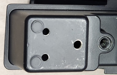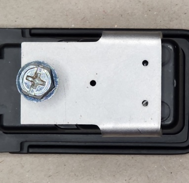 4. Reinstall the handle in the door, then using the supplied M3mm x 6mm pan head screws and spring washers install locking actuator onto the handle. Picture 5. It is recommended that Loctite or similar be applied to the threads of the screws that secure the locking actuator, so they don`t work loose over time. A dob of grease on the screwdriver tip helps keep the stainless-steel screws on the screwdriver. Then install the protection bracket using the mounting screw to keep it in position. Picture 6